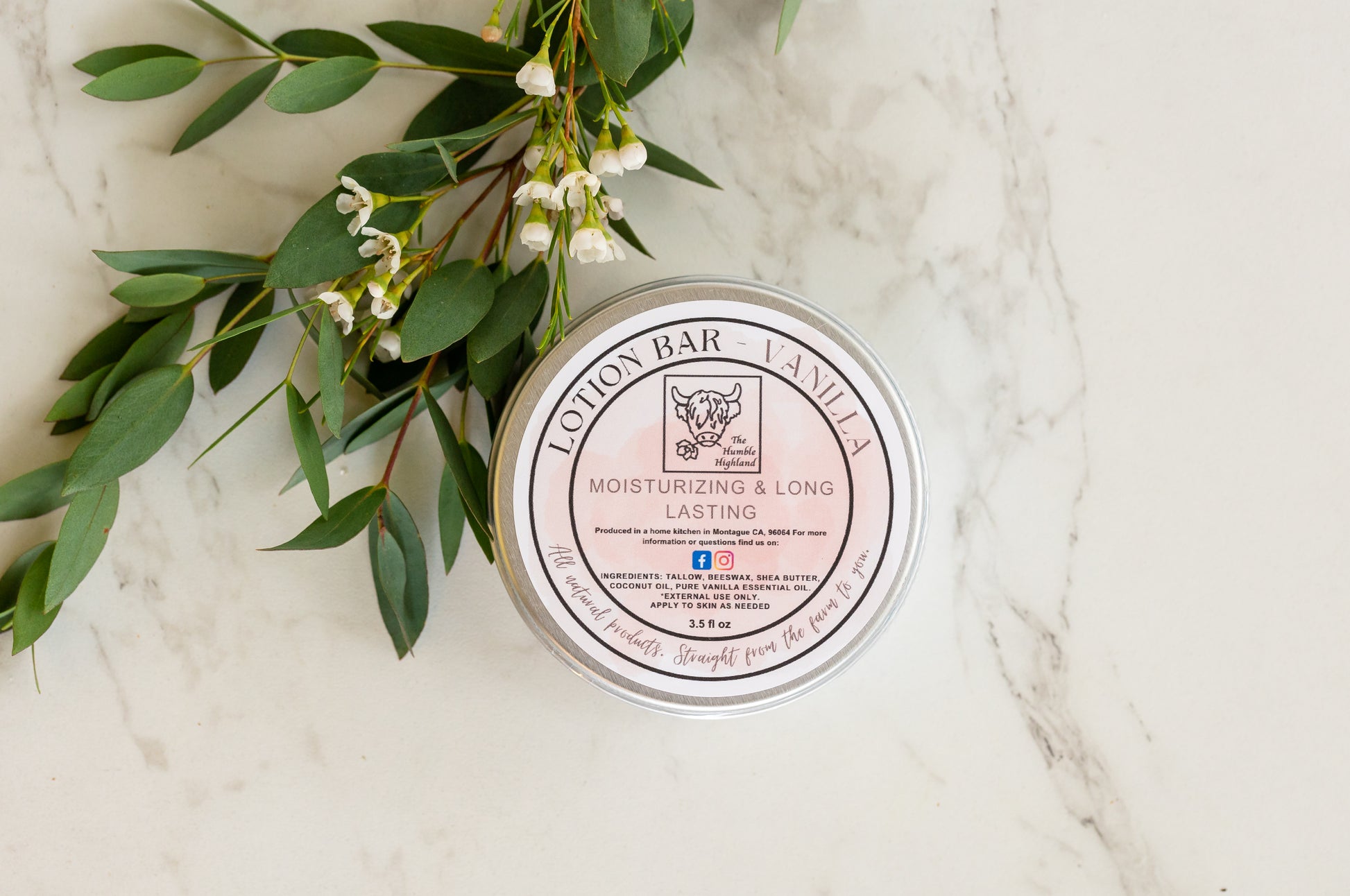Vanilla: Beef Tallow (Grass Fed Suet), Shea Butter, Coconut Oil. Pure Essential Oils of: Vanilla.